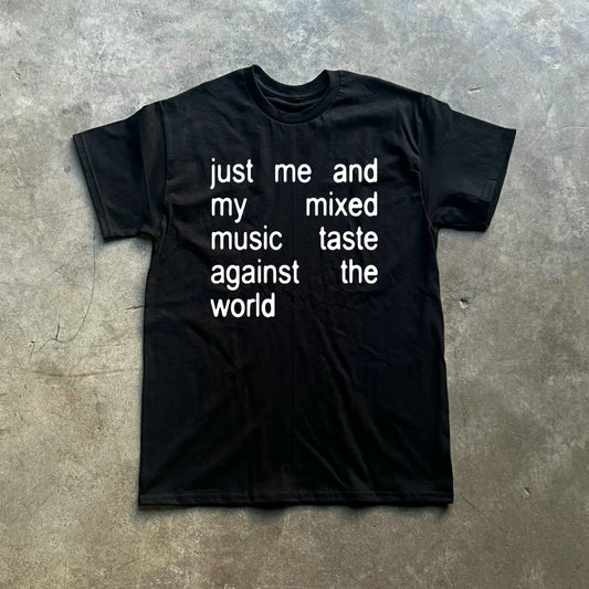 just me and my mixed music taste against the world tee